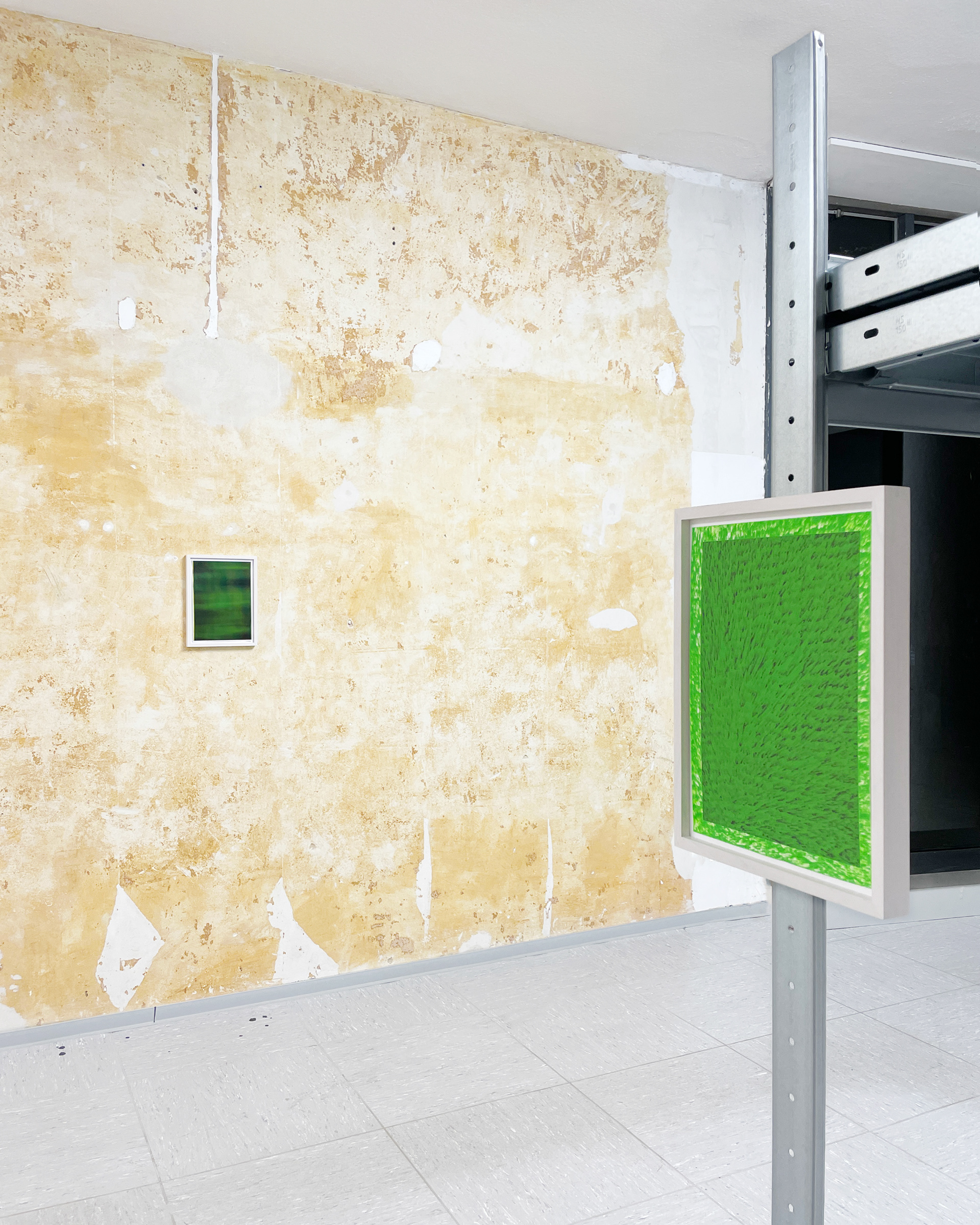 Mit den Werken Aaron Scheers und Berit Schneidereits treten in der Ausstellung Arbeiten in einen Dialog, die Sichtweisen und Medienverständnisse der Betrachter:innen auf die Probe stellen. In ihnen visualisieren sich verschiedene Gangarten und Modi der Fotografie und der Malerei, die sich miteinander verschränken und stellenweise auch mediale Evolutionsstufen nachvollziehbar machen. In gewisser Hinsicht sind es widerständige Bilder, undurchsichtige Hybride, die sich nicht sofort offenbaren, sondern unsere Wahrnehmung umlenken und befragen. Obwohl sich die Bilder auf den ersten Blick der einfachen Entschlüsselung verweigern, schaffen sie in ihrer Gegenüberstellung und ihrer Interaktion einen Raum der Interpretation und Reflexion, in dem sich einzelne Fragen beantworten und neue Fragen eröffnen. Ein shifting durch Bildräume und -ebenen, ein Spiel mit und gegen die Regeln. Andauernde Wechselverhältnisse, die unsere Vorstellungskraft herausfordern.