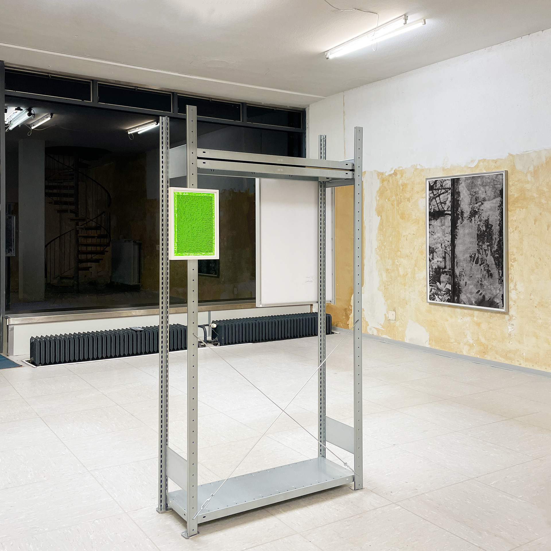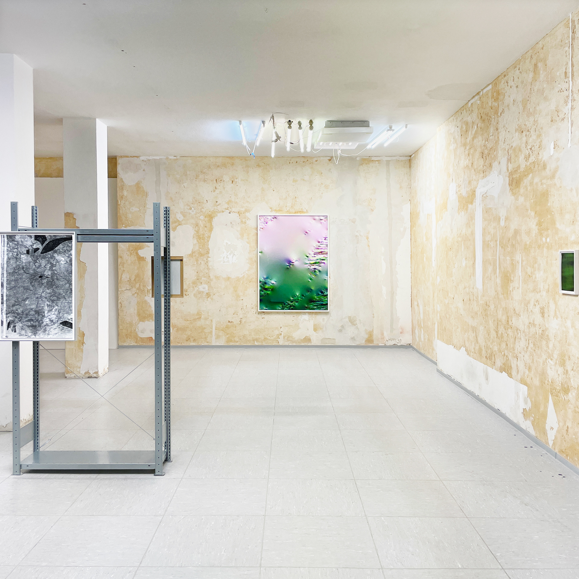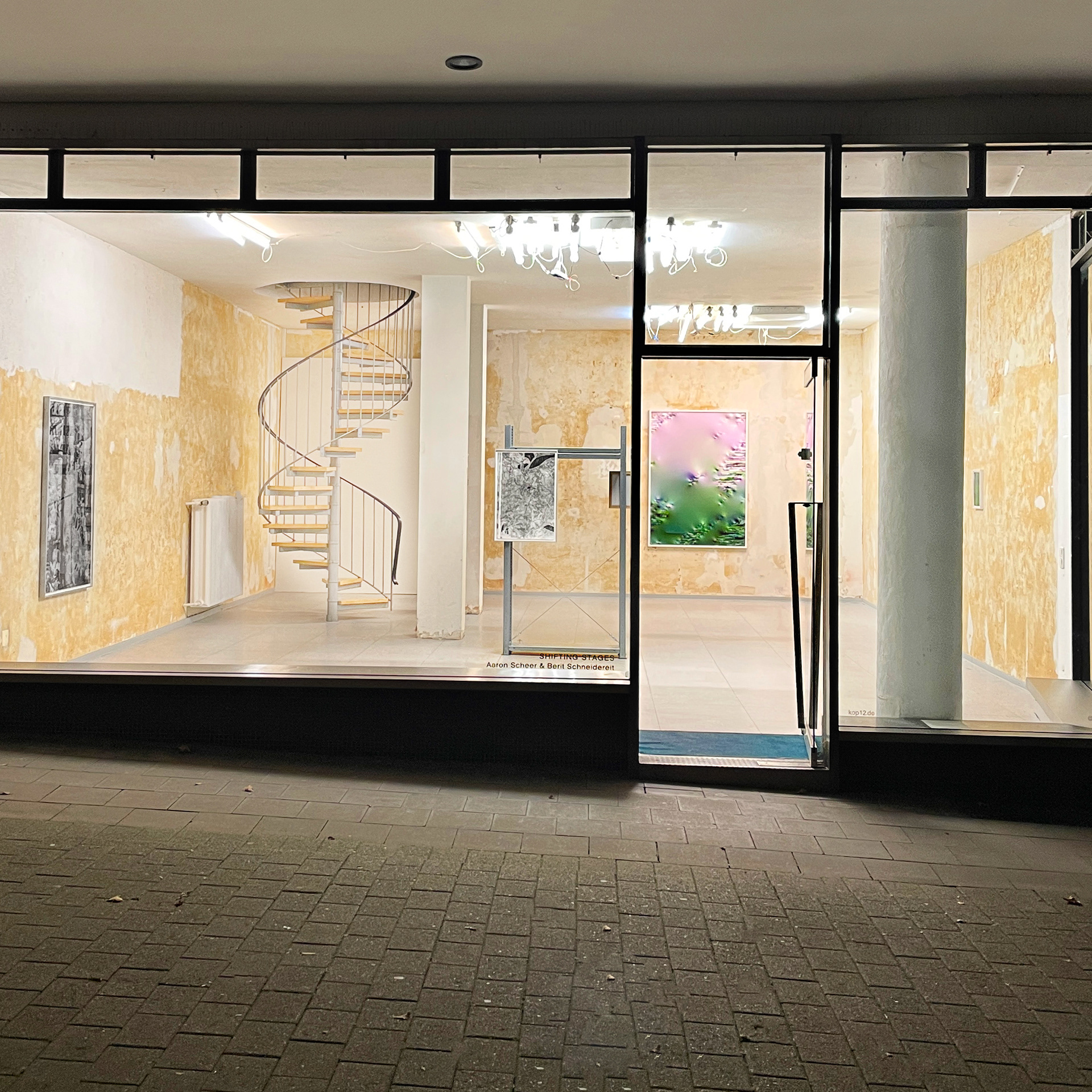Einzelne Fragmente, aus ihrem ursprünglichen Kontext losgelöst und in neue Beziehungen gesetzt. Schichten und Flächen, die sich übereinander schieben und überlagern. In der Ausstellung SHIFTING STAGES treffen Arbeiten von Aaron Scheer und Berit Schneidereit aufeinander, die aus unterschiedlichen Werkkomplexen beider Künstler:innen stammen. Sie verbindet in erster Linie eine analytische Herangehensweise und das prozesshafte Erforschen medienreflexiver Fragestellungen, denen sich die Künstler:innen aus verschiedenen Perspektiven annähern. Vor unseren Augen bauen sich vielschichtige Bildwelten auf, die fotografische und malerische Spuren sichtbar machen. Gleichzeitig entziehen sie sich jedoch einer eindeutigen Lesbarkeit und werfen Fragen nach der Konstruktion von Bildern auf.