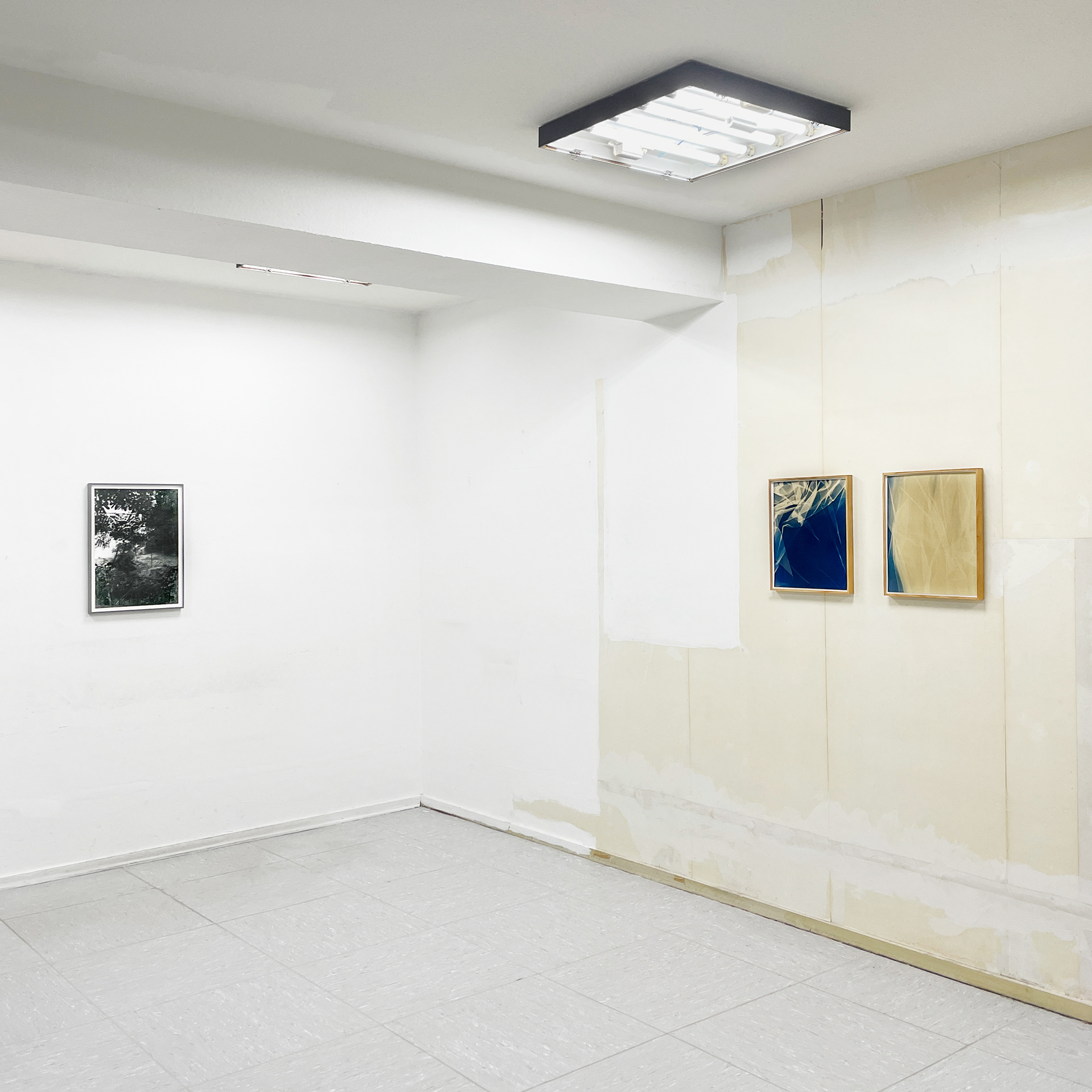Berit Schneidereit: fantasy V, photogram on gelatinsilver print, 2018; turns(subjective) III & thoughts VII, cyanotype on archival paper 2023/22
